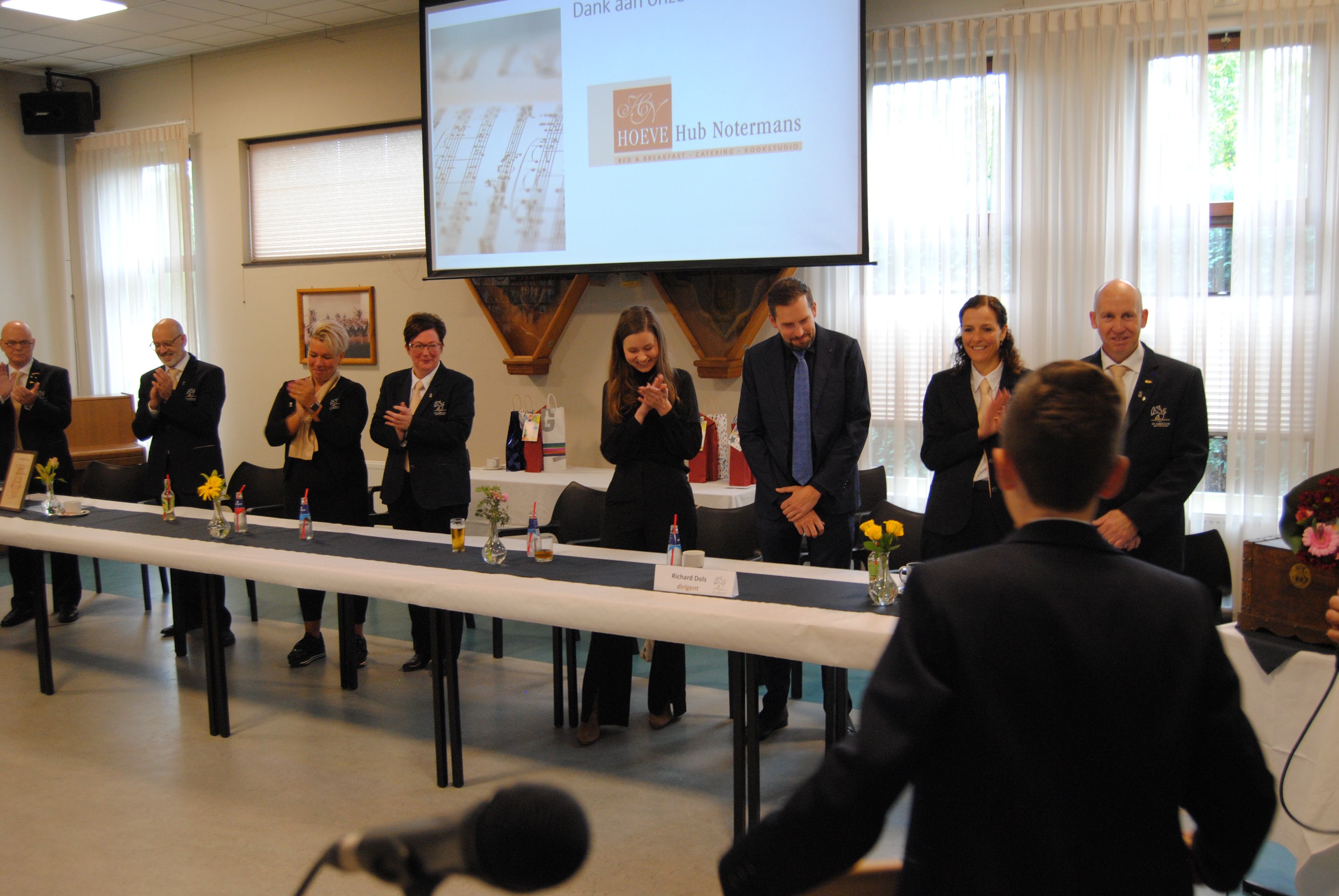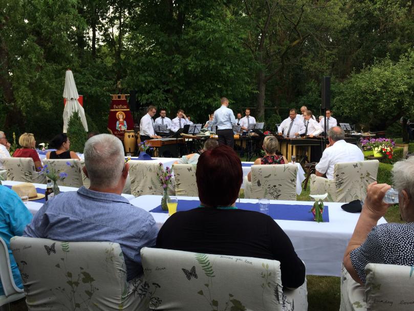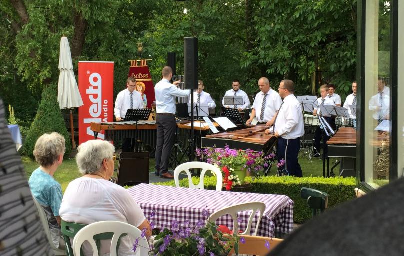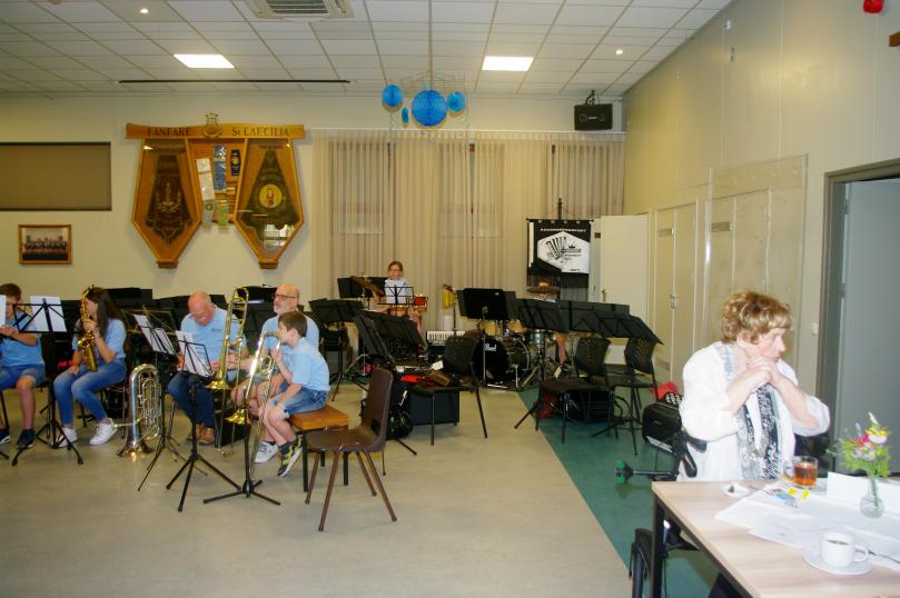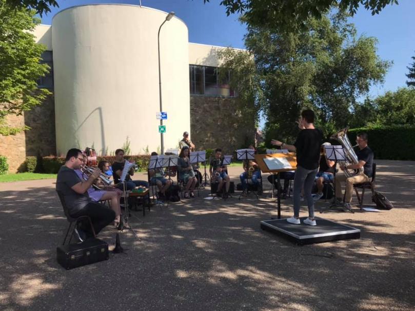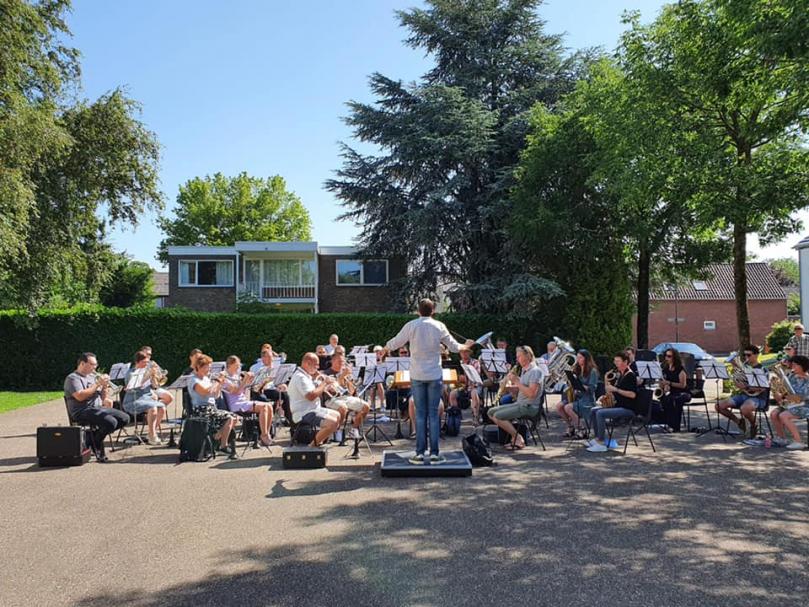 | Vandaag sloten we het bijzondere, korte muzikale jaar af met een repetitie buiten, in de zon. |