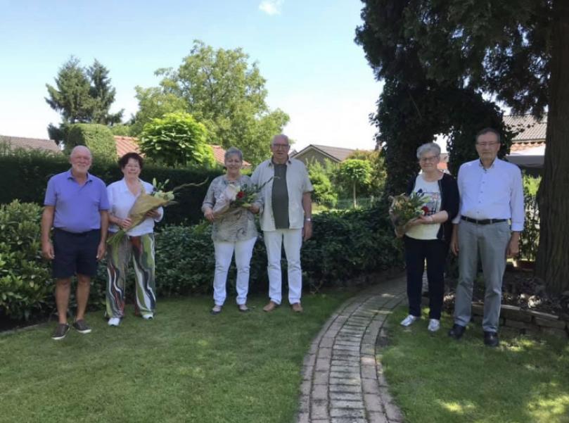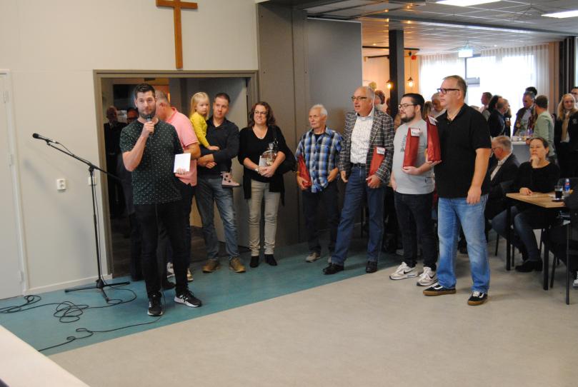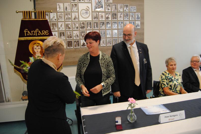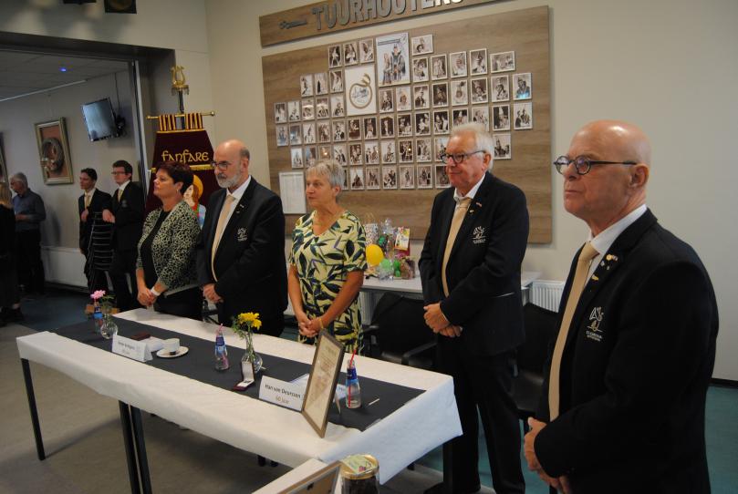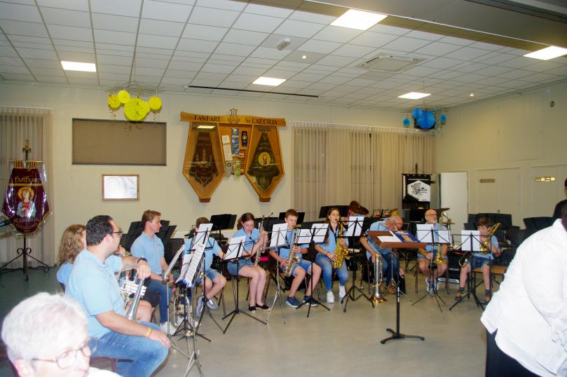 | Op zondag 18 september vond de receptie plaats voor de WMC deelname van de fanfare en de huldiging van 4 jubilarissen. |