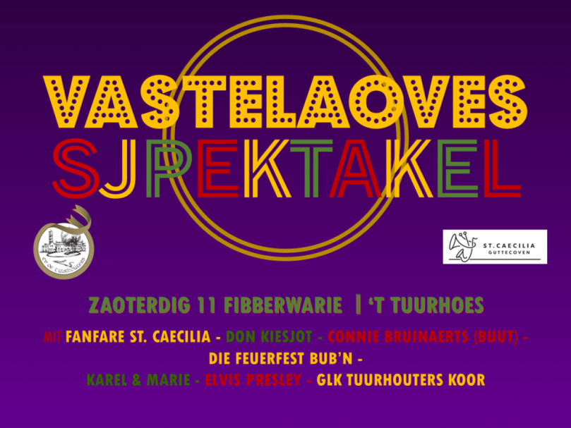 Samen met C.V. De Tuurhouters trappen we het carnaval af met een spetterend vastelaovesconcert getiteld: "vastelavesjpektakel".