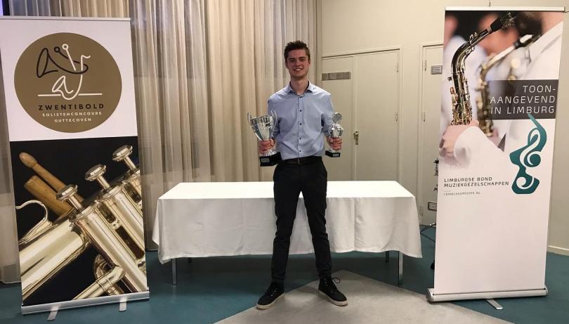 Altsaxofonist Sjors Hendriks van de Koninklijke Harmonie Aurora uit Grevenbicht is winnaar geworden van het Zwentibold Solistenconcours 2023