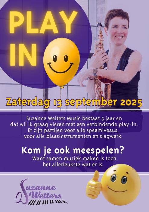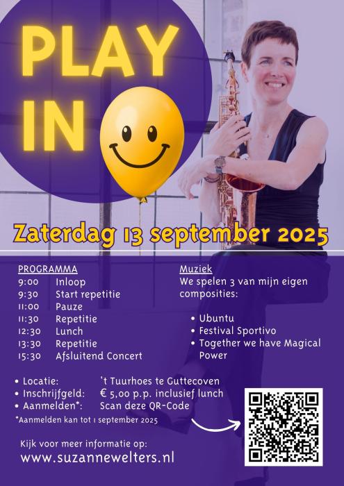 Op zaterdag 13 september organiseer Suzanne Welters in samenwerking met Fanfare St. Caecilia Guttecoven een gezellige play-in met verbindende en muzikaal uitdagende muziek! Doe mee en beleef een inspirerende dag vol samenspel en plezier.